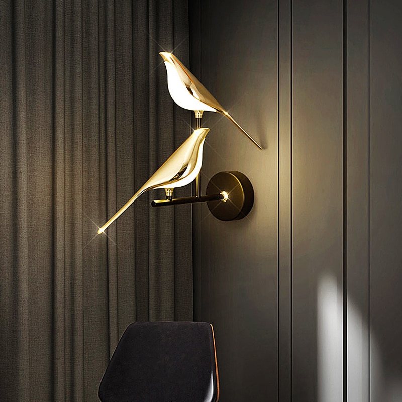 Estilo nórdico arte magpie pássaro lâmpada de parede led quarto lâmpada cabeceira salão fundo decoração da parede arandela iluminação interior