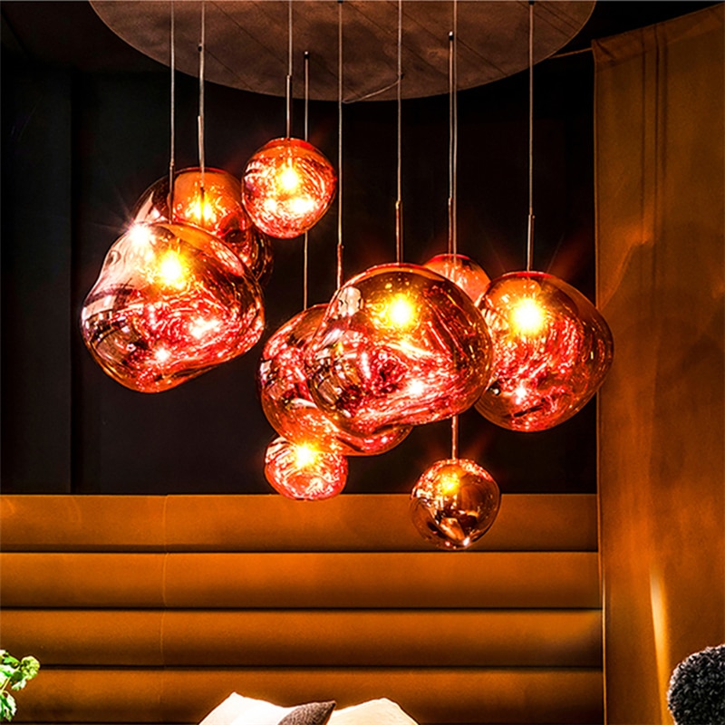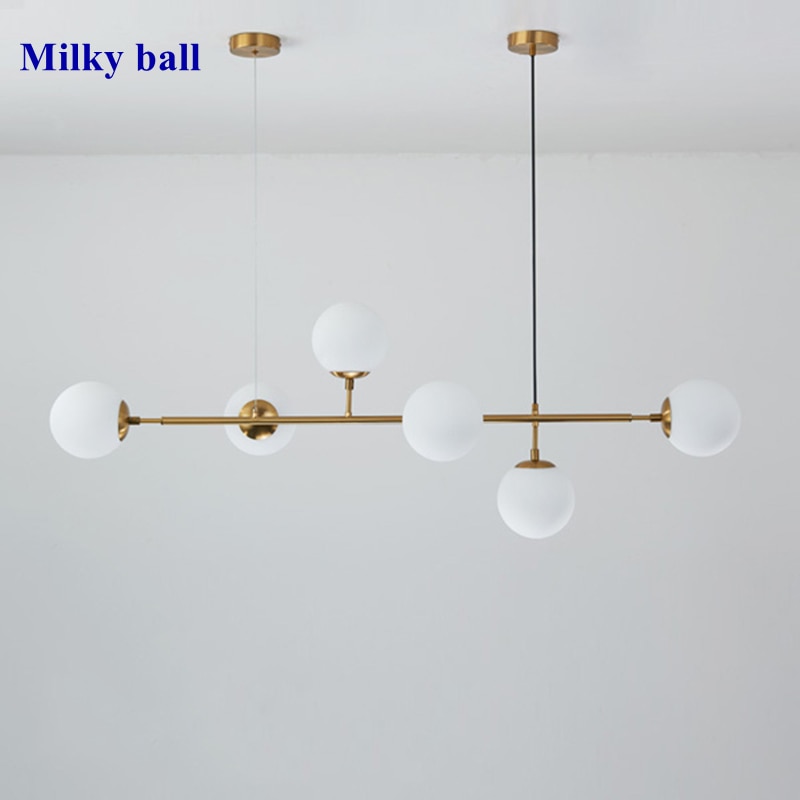 Nordic Art Strip Glass LED Pendant Lights Modern Glass Ball Suspension LOFT Ceiling Chandelier Hanglamp Smoke Gold Hanging Lamp